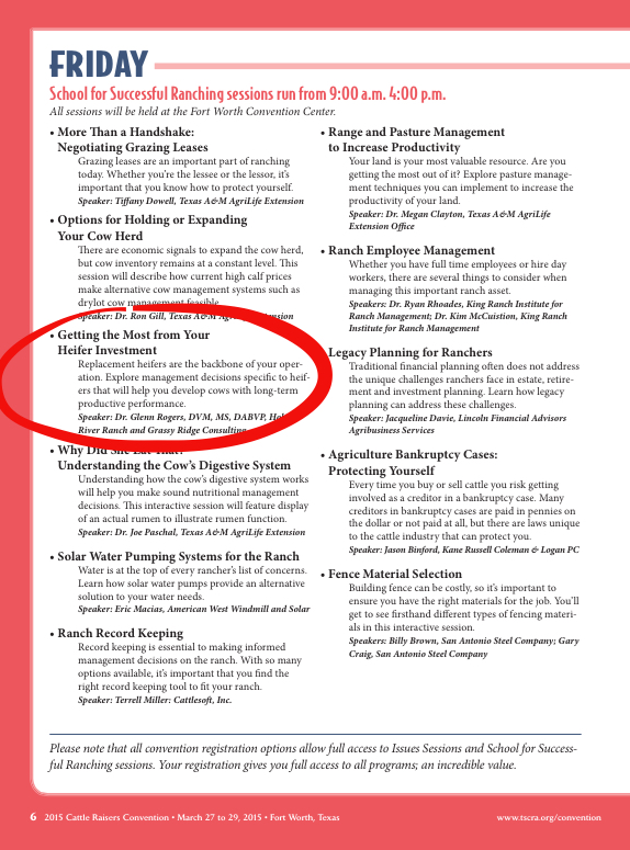 Dr. Glenn Rogers is a beef veterinarian with over 35 years’ experience in supporting cattle health and well-being in clinical practice, teaching, research and technical service. He is uniquely qualified to provide practical and professional consulting services to ranchers, working cooperatively with veterinarians and other advisors to achieve optimal health management and production goals. Dr. Rogers’ approach to cattle and ranch health issues can best be described as holistic, practical and comprehensive – de-emphasizing, but prudently incorporating, product based solutions.After graduation from Texas A&M in 1980, Dr. Rogers practiced for eleven years in the West Cross Timbers area of Texas where he owned and operated two rural, mixed practices. Glenn received his Master’s from Kansas State University in 1993 focusing on Beef Production Medicine. From 1993-2000 he was on the faculty at North Carolina State University where he was a tenured associate professor in Ruminant Production Medicine. Dr. Rogers has been a Diplomate of the American Board of Veterinary Practitioners in Beef Cattle since 1995. At the end of 2012, Dr. Rogers departed Pfizer Animal Health after a highly successful twelve-year career in field technical support and colleague management to devote more time to his ranching operation and ranch consulting business.